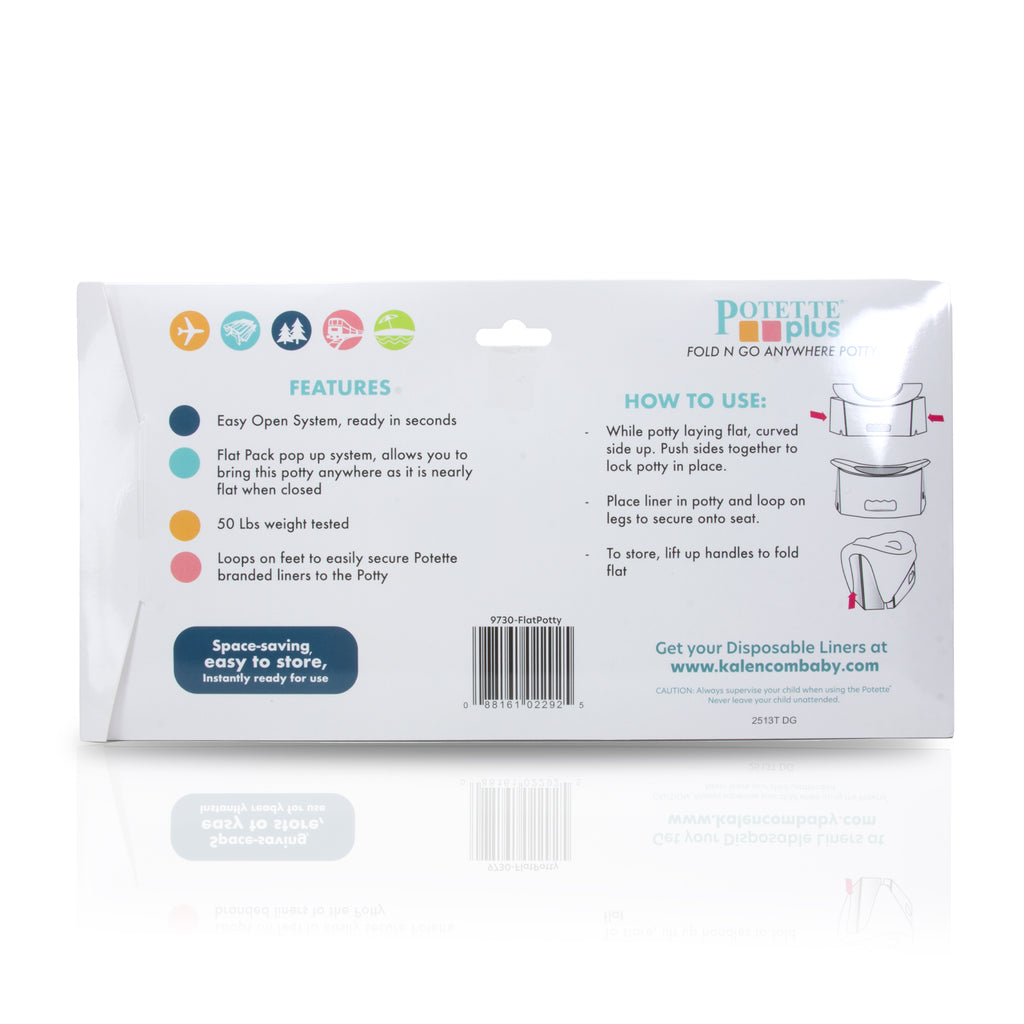 Meet the NEW Potette® Fold ‘N’ Go Potty – the most compact and reliable travel potty. Designed by Potette® for real-life parenting, this collapsible potty seat folds down to just 1cm, making it easy to carry in any changing bag, buggy basket, or car. Whether you're tackling toilet training at home or on the move, it's the best portable potty for everyday adventures. Suitable for 15 Months + and has a Max Weight limit of 50lbs.