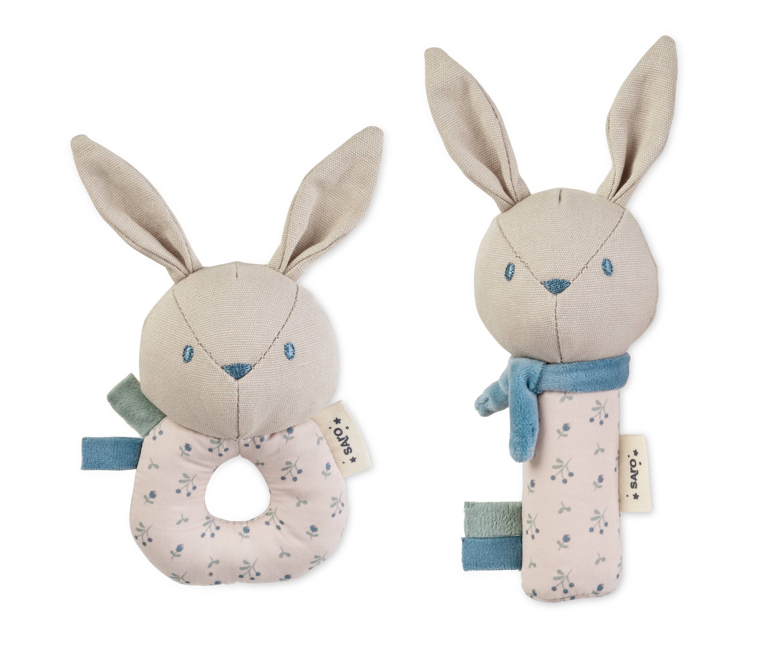 “Cotton Bunnies” Rattle Ring + Squeaker Set - Dusty Blue