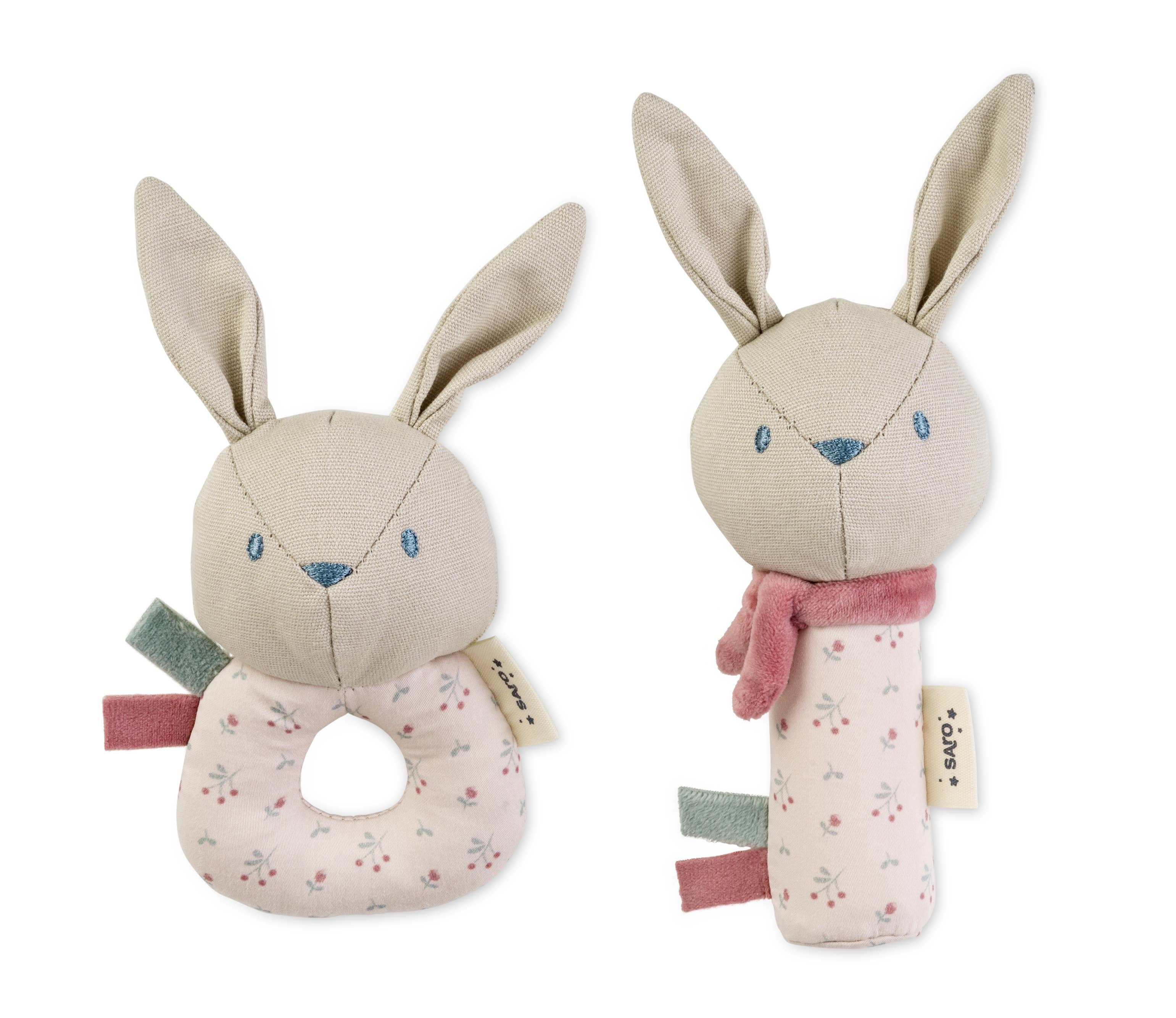 “Cotton Bunnies” Rattle Ring + Squeaker Set - Dusty Pink